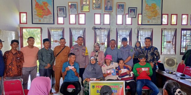 Penyaluran bantuan langsung tunai (BLT) dana desa ini, berlangsung di Kantor Kepenghuluan Perkebunan Siarang Arang, Kecamatan Pujud, Kabupaten Rokan Hilir, Riau.