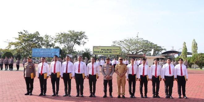 Upacara dipimpin langsung oleh Kapolres Rokan Hilir AKBP Isa Imam Syahroni SIK MH dan dihadiri Wakil Bupati Rokan Hilir Joni Carles, B.B.A., M.B.A, yang secara langsung menyerahkan penghargaan kepada personel berprestasi.